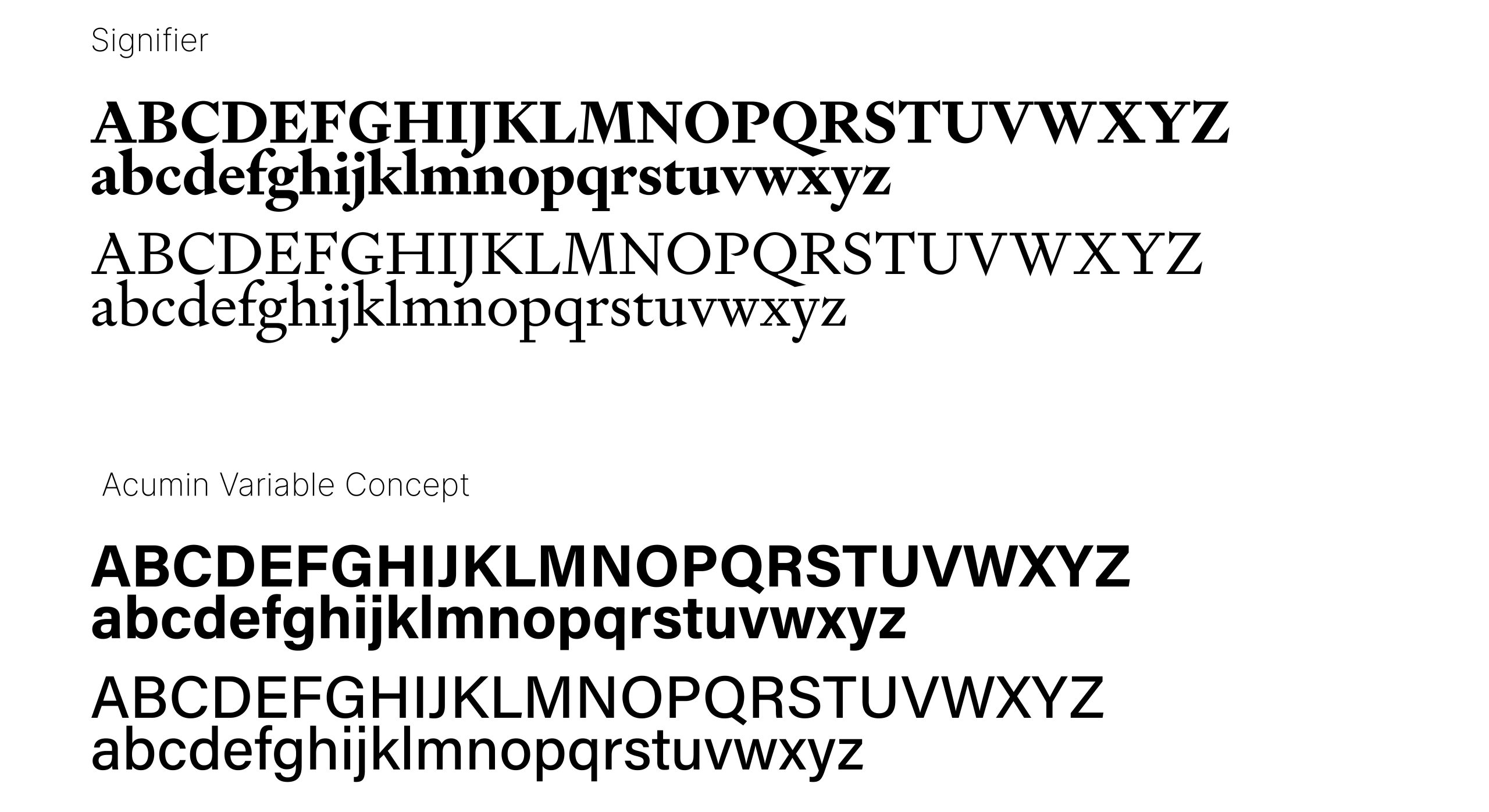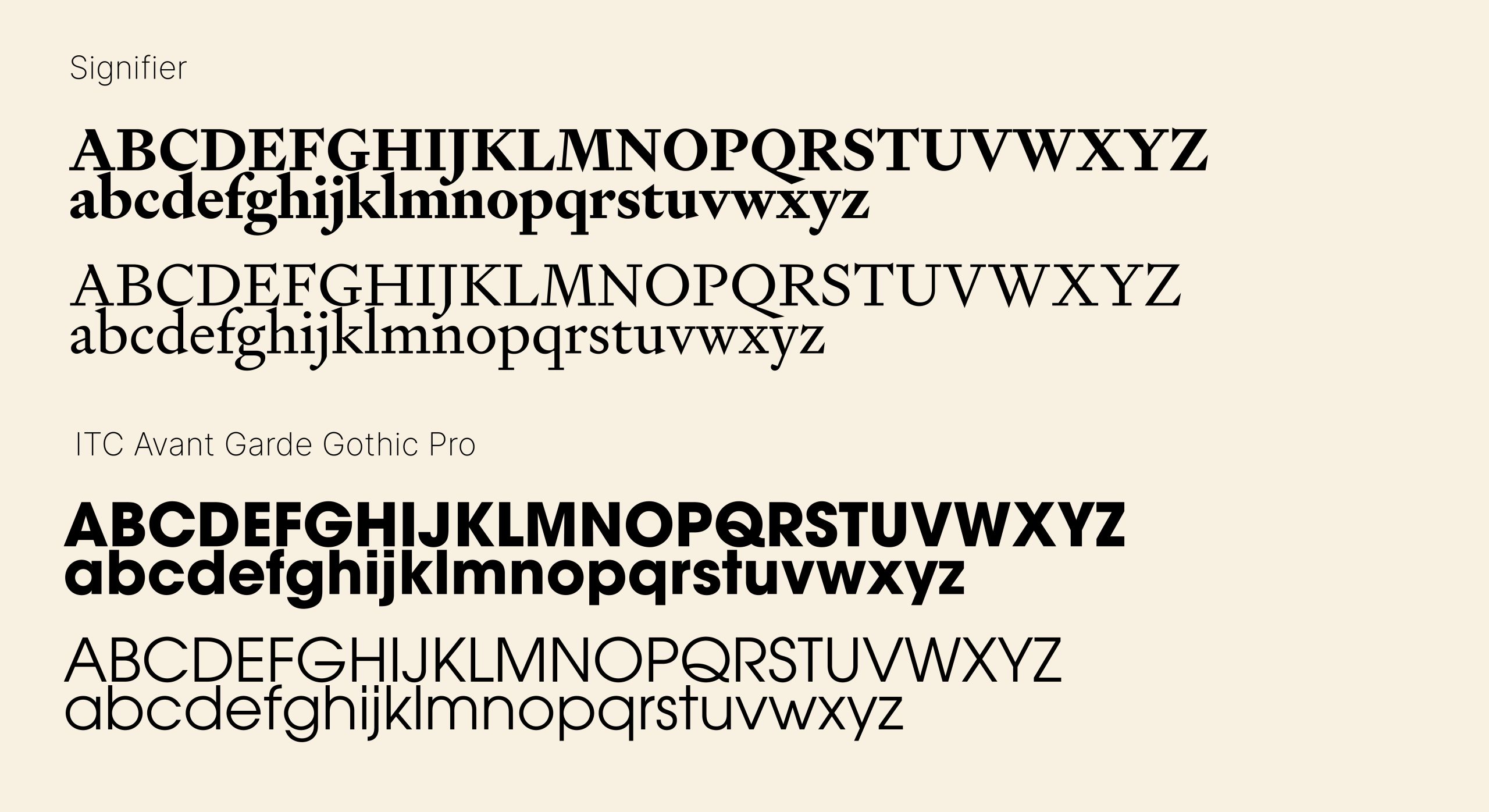 In order to keep the branding feeling modern, however, I also explored the use of more recently developed fonts such as Signifier from Klim Type Foundry, which has unique geometric terminals and characteristics that could serve well for headings and large text. Acumin, a neo-grotesque font, was also considered as body and header text for the brand suite due to its versatility and quality – it also pairs well with Signifier.