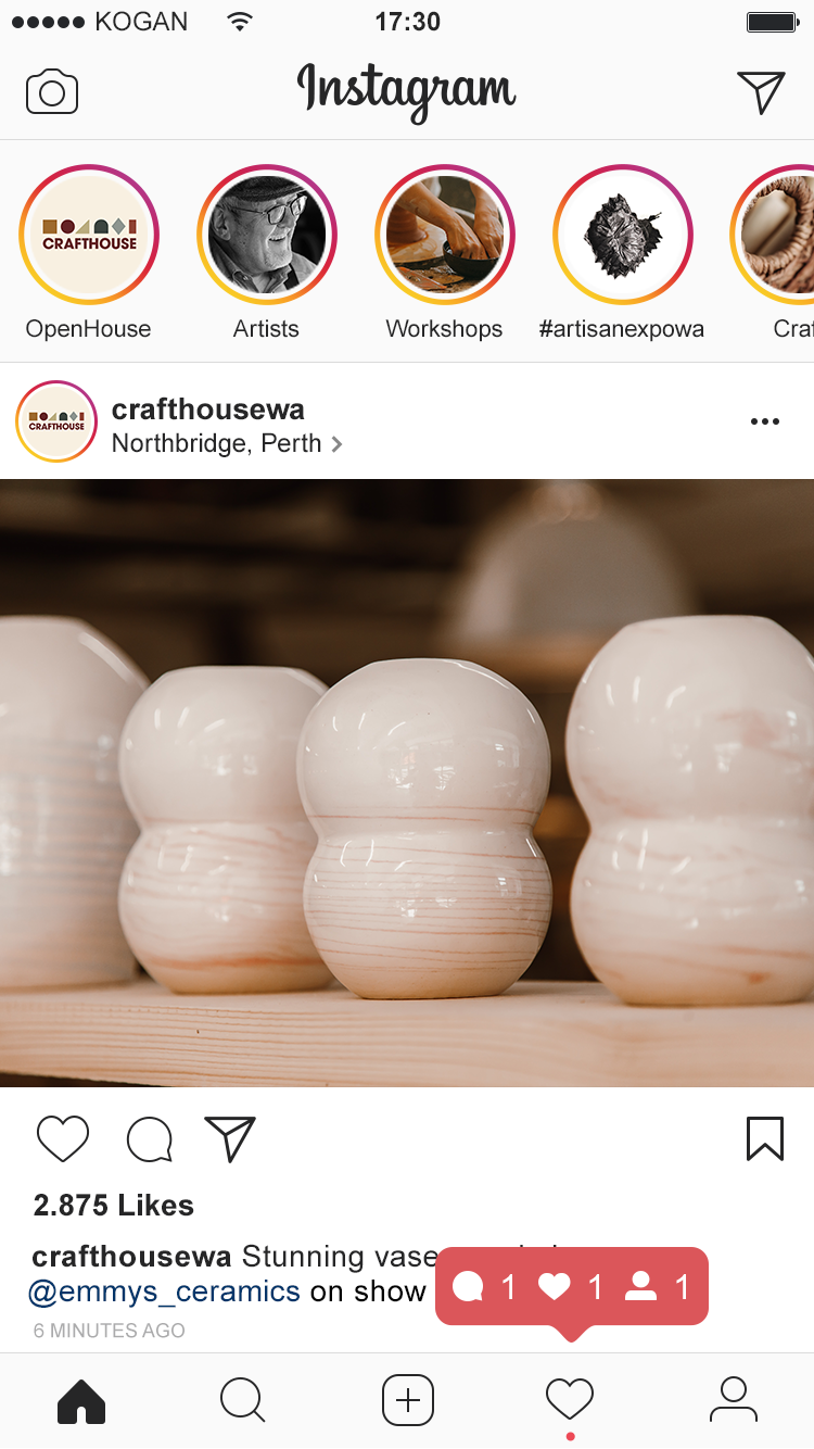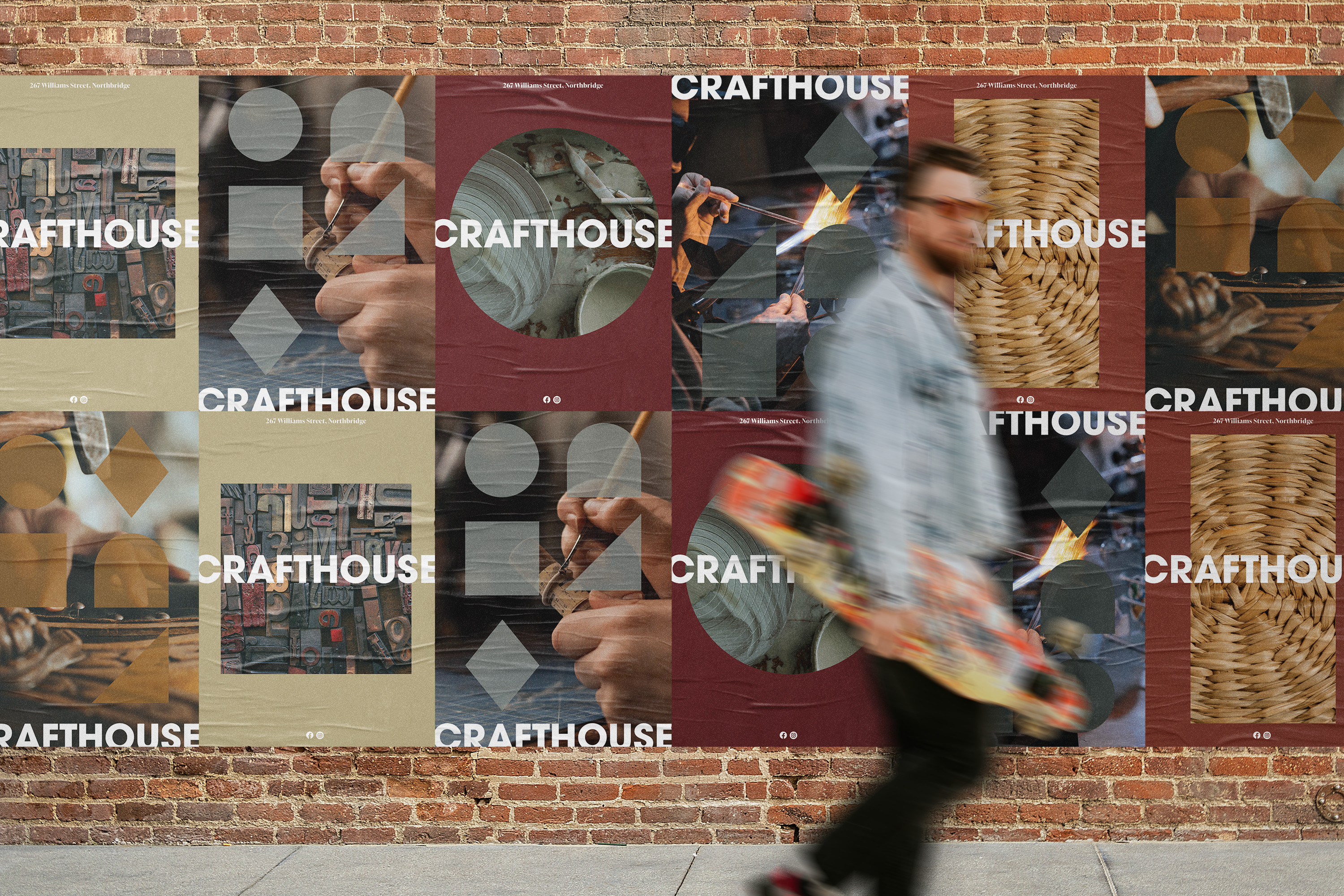 Application of the brand system across different platforms – shapes paired with photographcs used can be used to communicate different artisan practices in Crafthouse without any words needed.