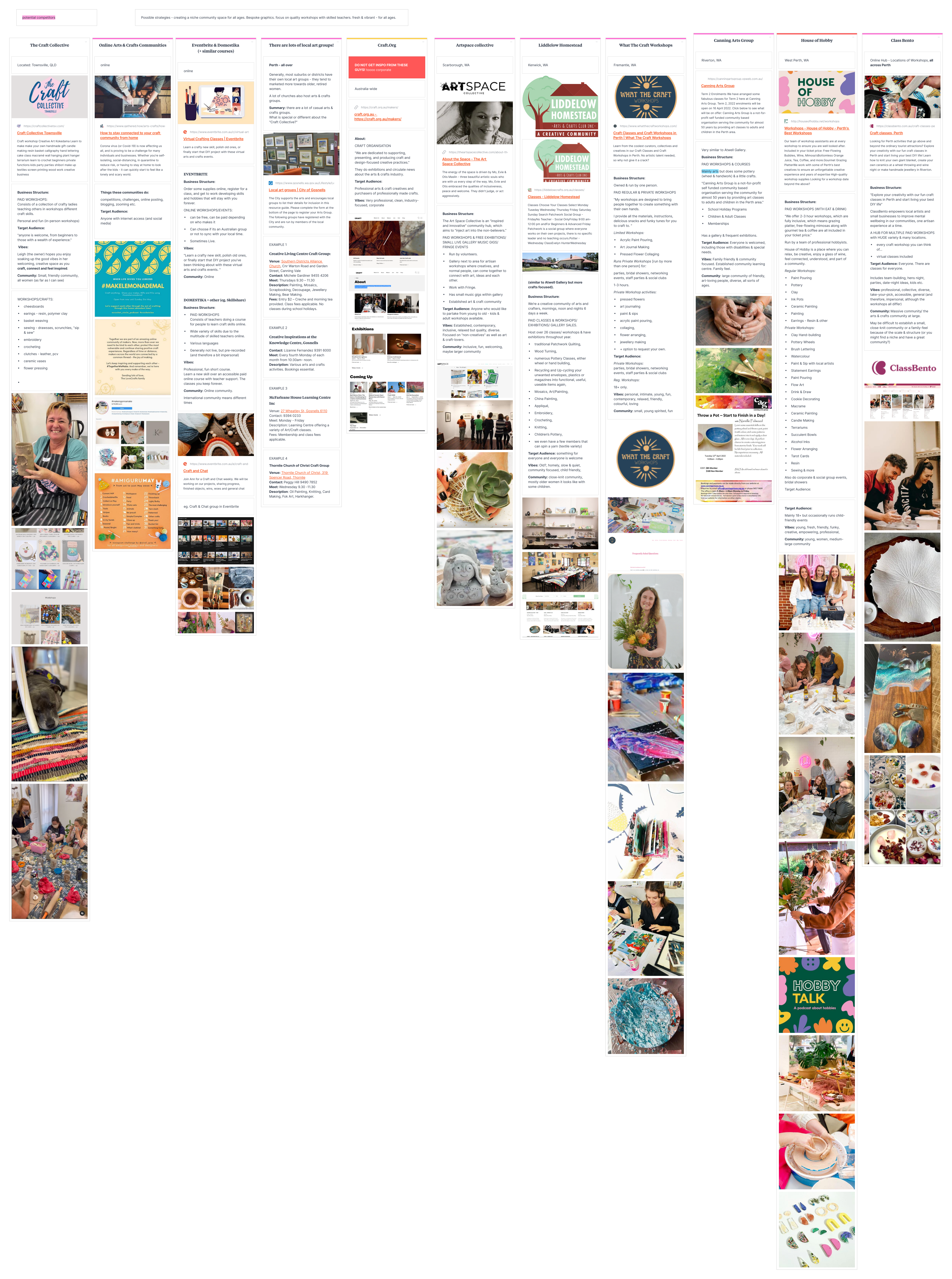 Research included current design trends in branding, the arts and crafts movement, local and international competitors. See the detailed research process here.